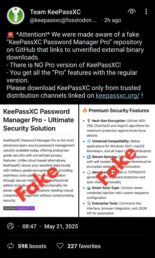 PSA: The amount of stars on GitHub can be botted and is not a good indicator to know if you are dealing with a legitimate repository. Even the commit history can be faked (although that’s less common).