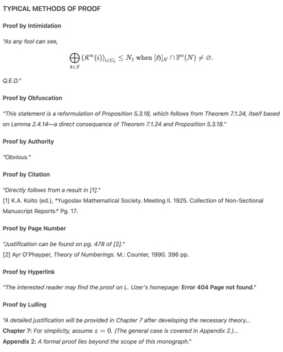 @cm0002 There is also the verbal proof method - Proof by Loud Assertion
