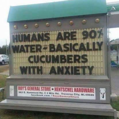 We’re not 90% water, it’s about 60% for adults