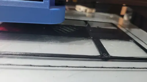 As you can see here, the next problem was patchy, uneven extrusion. I found that the extrusion would continue with a little bit of pressure against the filament to the drive gear. That’s where you see the dark patch on the right where it started working again on the second layer.