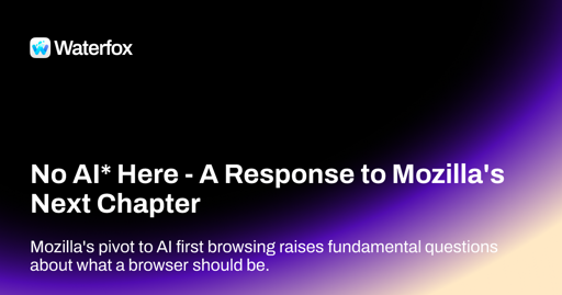 I was a Waterfox Classic user for a few years, while I weaned myself off classic extensions, and I’m grateful for that option. Then it started to lag more and more behind in development, and an increasing number of sites were broken in it, so I went back to vanilla Firefox, but now I wonder if I’ll return to Waterfox if this LLM-craze continues…