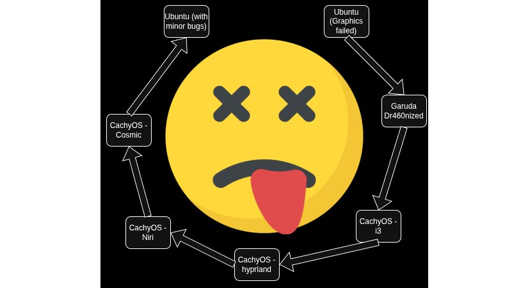 Not sure about Ubuntu, but for your CachyOS attempts, I probably would have avoided the DEs you tried. COSMIC is still under heavy development, and might work better on its “home OS” (being Pop!_OS, but this is complete speculation on my part). Hyprland and Niri seem like advanced DEs to me every time I see them mentioned, so I would have avoided them for a new user.