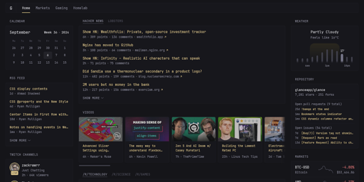 This looks interesting, but I don’t know if it can replace anything. I have Home Assistant dashboards and Homarr. Would be nice if I could have both in one place. But this seems to be a homepage replacement for news and YouTube, not local services.