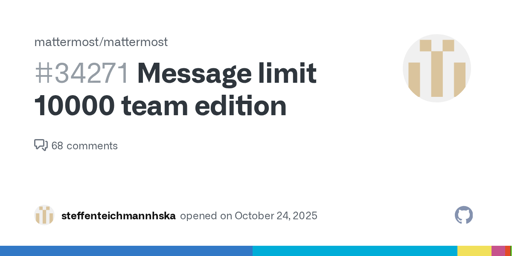 King@sh.itjust.works to Technology@lemmy.worldEnglish · 3 days agoMattermost restricted access to old messages after 10000 limit is reachedplus-squaregithub.comexternal-linkmessage-square35fedilinkarrow-up1131arrow-down15