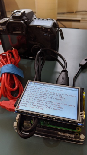 The Raspberry Pi is from 2020, running Raspbian, and it was used as an intervalometer with the help of gphoto2 (meaning no great efforts were demanded from it).