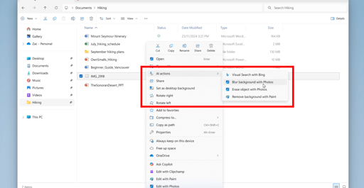 Microsoft is starting to integrate AI shortcuts, or what it calls AI actions, into the File Explorer in Windows 11. These shortcuts let you right-click on a file and quickly get to Windows AI features like blurring the background of a photo, erasing objects, or even summarizing content from Office files.