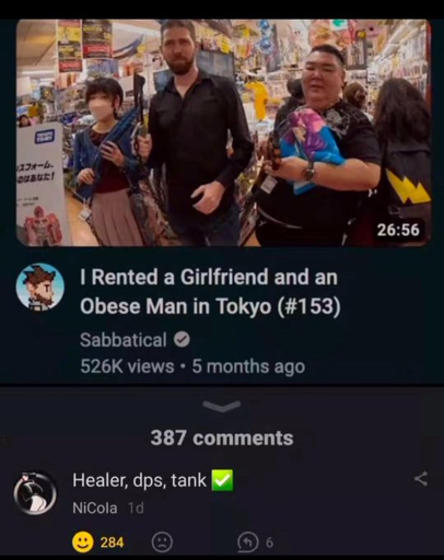 It’s sexist to automatically label any women as a “healer” and we have no idea of the obese man’s damage resistance or health bar.