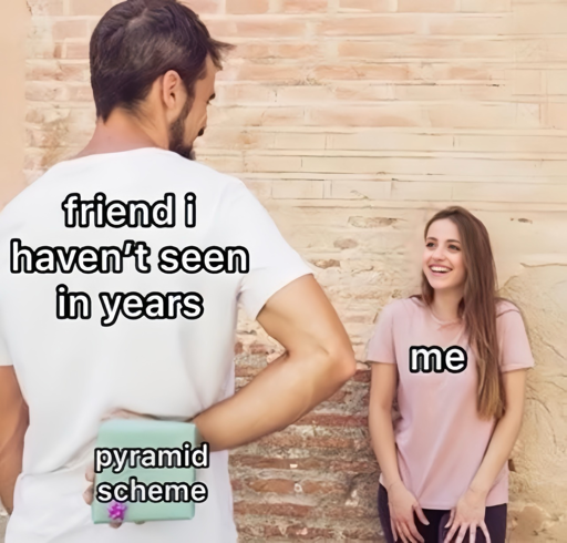 I’m the guy but instead of a pyramid scheme I’m just trying to get all of my friends to install Linux and switch to fediverse social platforms