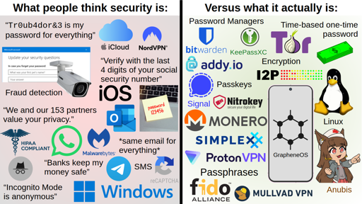 I’ll go further than this and say that true security is where everybody has support enough to not want to steal your shit, hack you etc.