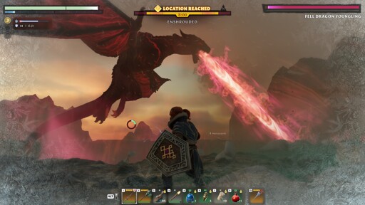 This “Fell Dragon Youngling” is currently the endgame boss. I dunno how big an adult one of these will be, but there are dragon skeletal remains scattered around the world that are bigger than cities! I hope the developers incorporate an adult Fell Dragon in a later update, because that would be an epic endgame challenge!