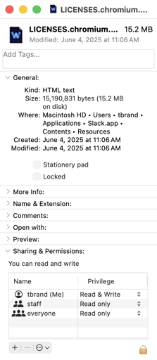 And given that the filename starts with LICENSES.chromium, it is probably just the one copied from Chromium which is the base of all Electron apps. Nothing we didn’t know yet.