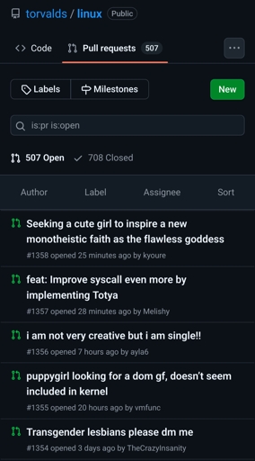 yogurtwrong@lemmy.world to Linux@lemmy.ml · 15 days agoLinux github repo is now a dating boardimagemessage-square54fedilinkarrow-up1372arrow-down18