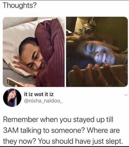 Remember when you you were crying from loneliness till 3AM till you sobbed to sleep? Well the crying didn’t make any friends so you should’ve just slept