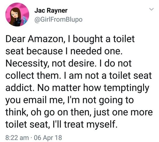 Look, most toilets come with seats. Amazon knows that your fat ass broke one, the cheap shit one you just bought isn’t gonna be as good a the OEM one.