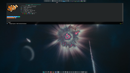 Fairly basic, but very usable and feels a lot better than windows. Feels like the fake sleek modern/futuristic ui they show in tv shows. What music visualizers do you guys like? I enjoy cavalier, miss wallpaper engine, but Hidamari is decent.