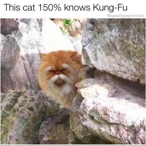 Many cats know kung-fu*. This cat knows the Five Point Paw Exploding Heart technique.