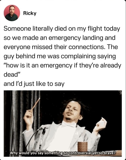 I get it, but it’s an emergency for the passenger that has to sit next to a dead guy for the entire flight.