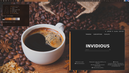- st patches: alpha, anysize, appsync, autosync, bold is not bright, clickurl, clipboard, ligatures, scrollback