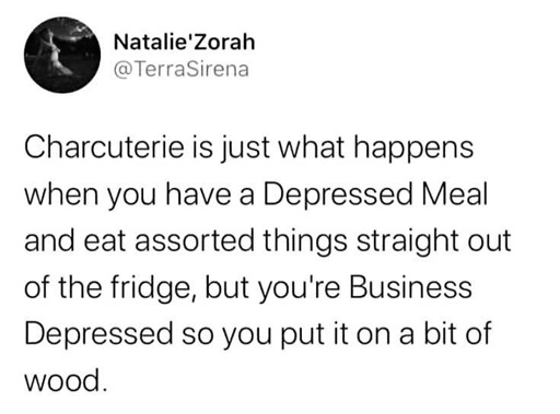 I take personal offence to this. Charcuterie is one of the least depressing foods I can think of!