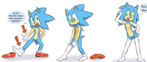 Well I’ll be damned, Sonic was basically wearing leg and arm condom sleeves the whole time. Cute, cursed, and now impossible to unsee. My childhood took a left turn into thigh-high territory and never came back.