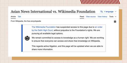 • https://en.wikipedia.org/wiki/Wikipedia:Community_response_to_Asian_News_International_vs._Wikimedia_Foundation
