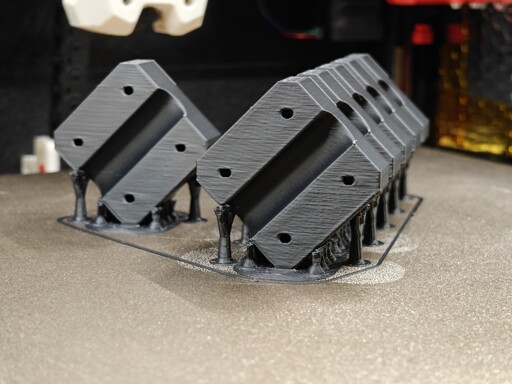 I was wondering if it was some sort of alignment/clamp for something like pipes or rods, or maybe some sort of bushing/bearing holders (think linear rods). Your tuning looks great btw, look pretty nice even in the worst case lighting conditions, adhesion not an issue doing this way? My dad asked me to print some stuff he designed for his beekeeping tools, has a bearing surface that’s awkward to print accurately, I’m probably going to revisit that with this as inspiration, other than the helper ears I see on the build plate anything else you did?