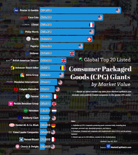 Jimmymcool@lemmy.world to Data is Beautiful@lemmy.worldEnglish · 26 days agoGlobal Top 20 Listed Consumer Packaged Goods (CPG) Giants by Market Valueplus-squarelemmy.worldimagemessage-square0fedilinkarrow-up12arrow-down10