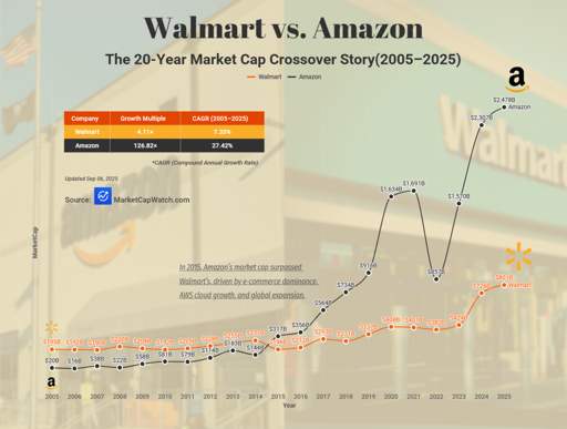 arrow-up11arrow-down1imageWalmart vs. Amazon: 20-Year Market Cap Crossover (2005–2025)[OC]plus-squarelemmy.worldJimmymcool@lemmy.world to Data is Beautiful@lemmy.worldEnglish · 27 days agomessage-square0fedilink