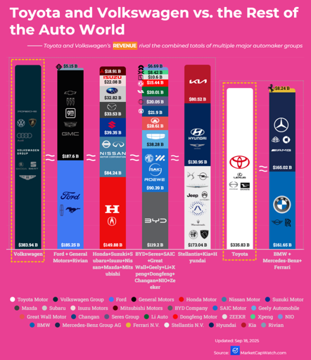 arrow-up115arrow-down1image"Toyota & Volkswagen: Benchmarking the Big Leagues" How the two largest automakers compare to clusters of rivals in the global revenue raceplus-squarelemmy.worldJimmymcool@lemmy.world to Data is Beautiful@lemmy.worldEnglish · 16 days agomessage-square4fedilink